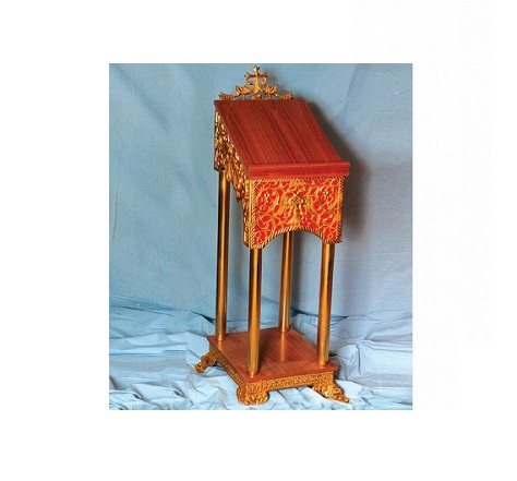 Iconostasul, arata chipul lui Dumnezeu si caile Lui in istoria mantuirii omului, prin mijlocirea Sfintilor si a Ingerilor care se roaga impreuna cu cei ce participa la slujbele din biserica. Iconostas din aluminiu aurit, 51 cm latime, 58 cm latime si 140 cm inaltime
